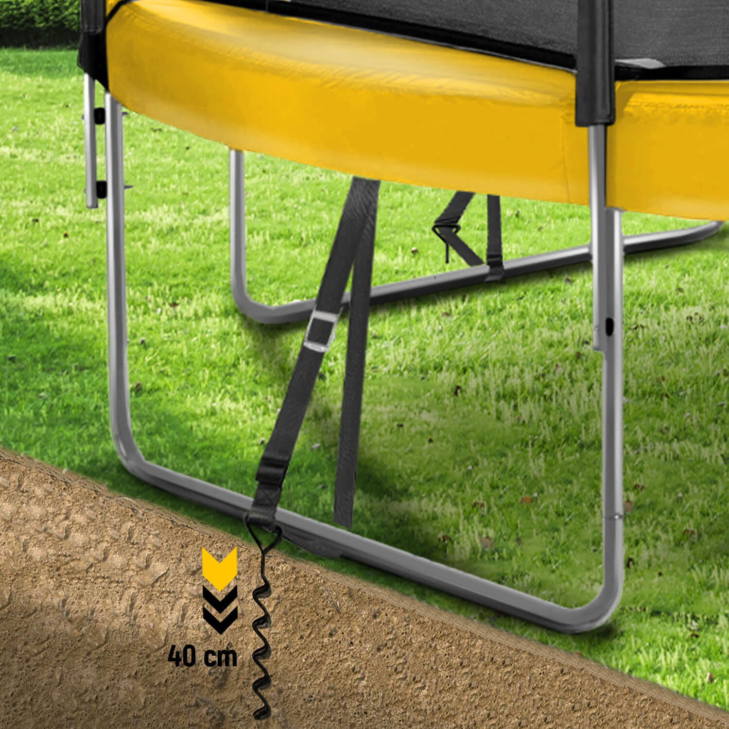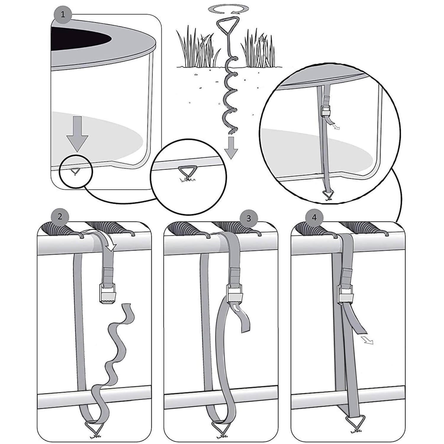 Kitul de ancorare pentru trambulina Infinity este accesoriul perfect pentru a fixa trambulina Infinity Octagonala sau Rotunda in conditii meteo nefavorabile. Acest kit premium foloseste ancore tip tirbuson si chingi late, mentinand trambulina stabila pe sol in conditii de vant puternic.