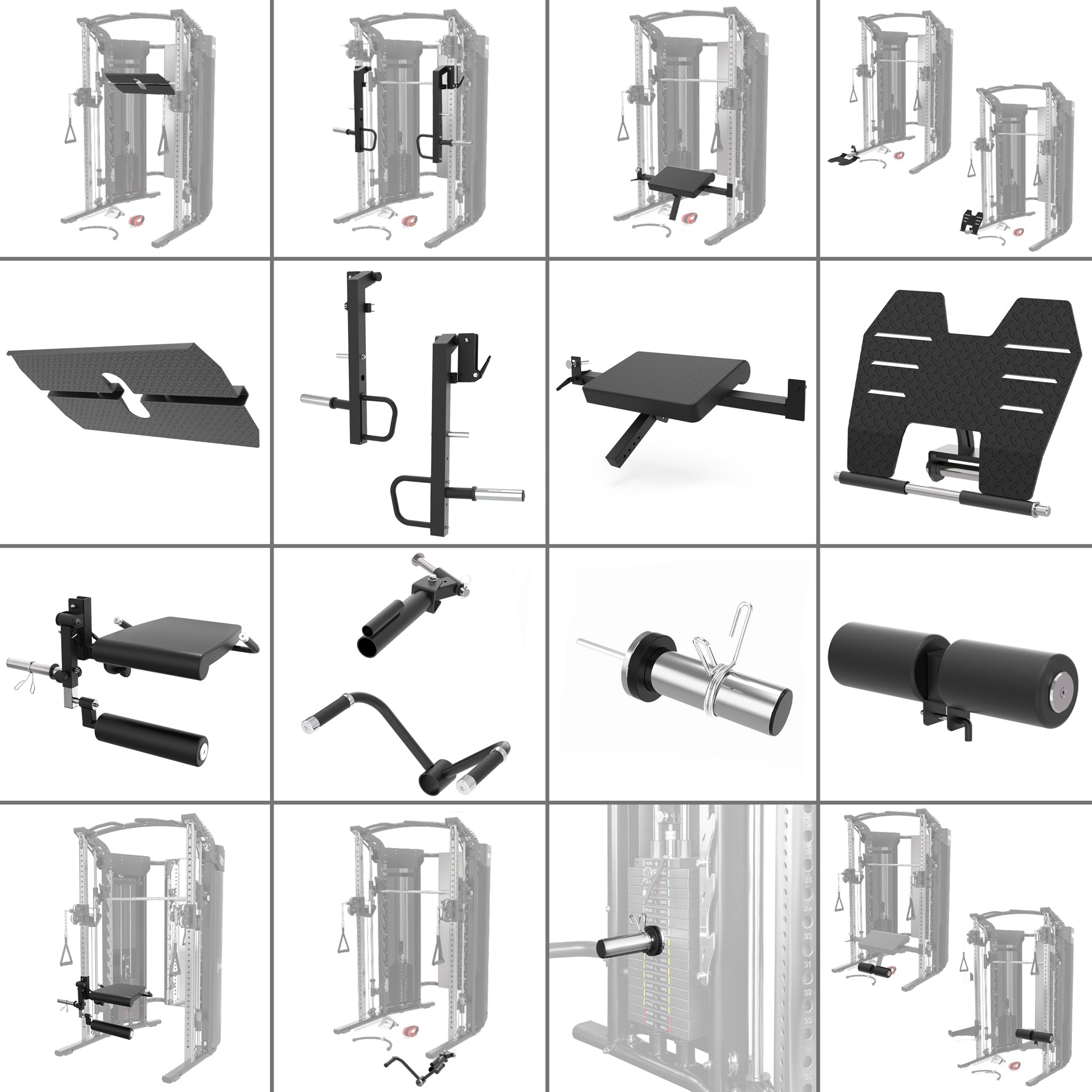 Stația permite efectuarea unei game largi de exerciții: genuflexiuni, împins la piept, tracțiuni, ramat, fluturări, extensii, triceps, biceps, abdomene și multe altele. Poți lucra fiecare grupă musculară – piept, spate, picioare, umeri, brațe, fese și trunchi.