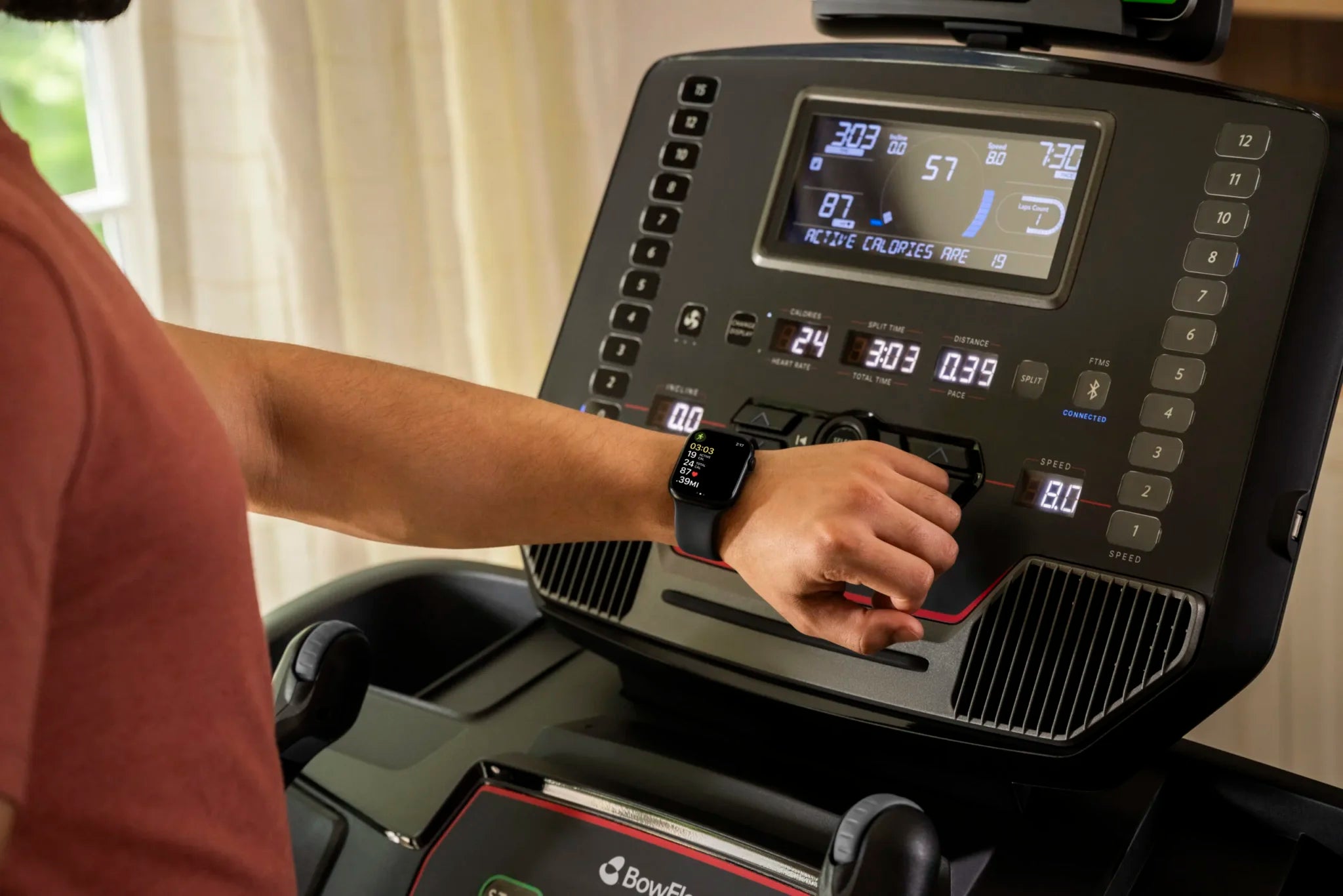 Conectati-va la Apple Watch®2 si Galaxy Watch Antrenati-va cu JRNY, Kinomap si Zwift®3 Tehnologie avansata de raspuns rapid la comenzi Sistem de amortizare Flex Zone XL Consola LCD color, cu contrast ridicat Viteze de pana la 20 km/h (12 mph) Reglarea electrica a inclinatiei de pana la 15%.