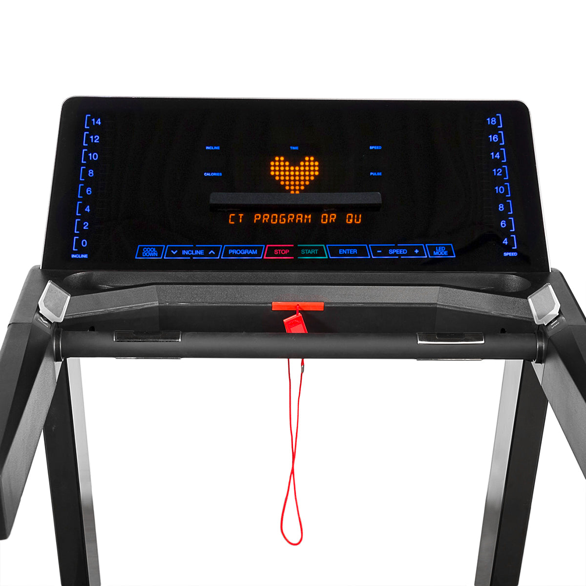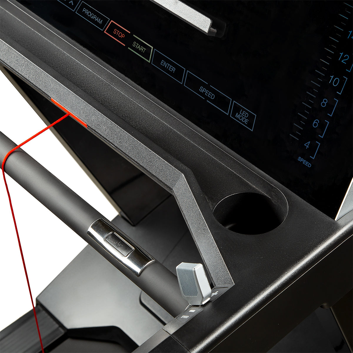 Pe lângă performanțele tehnice, banda impresionează și prin designul modern, completat de iluminare LED a suprafeței de alergare.
