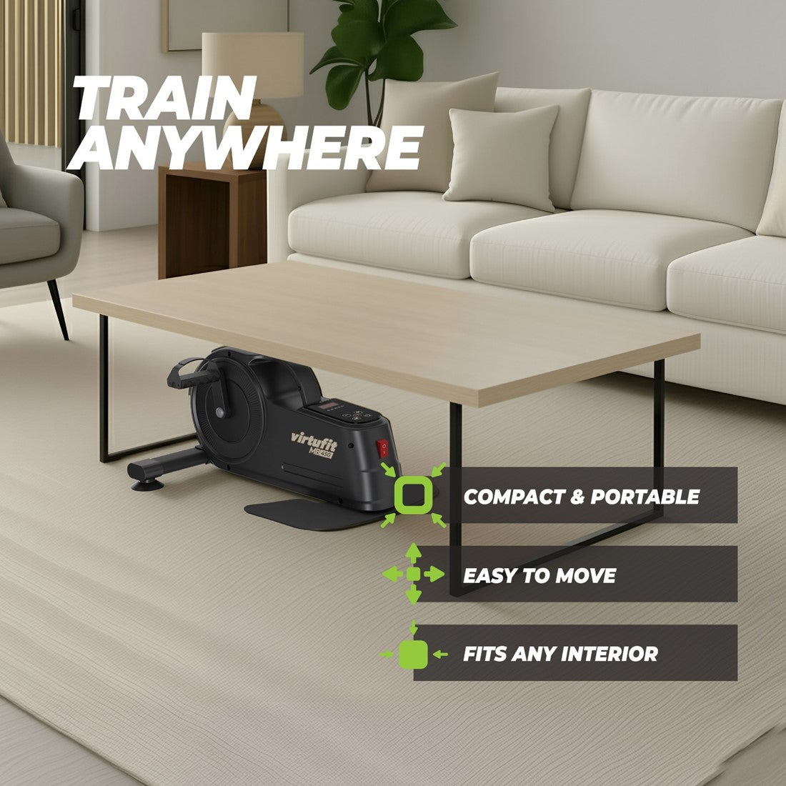 Garantie VirtuFit Bicicleta de execitii pliabilaDescriere produsVirtuFit MB450 Exercise Bike oferă o soluție compactă și ușor de utilizat pentru oricine dorește să rămână activ. Fie că te antrenezi acasă, la birou sau în perioada de recuperare, această bicicletă pentru scaun te ajută să lucrezi confortabil la sănătate și mobilitate. Datorită designului economisitor de spațiu și operării simple, MB450 este potrivită pentru toată lumea, indiferent de obiectiv sau locație. VirtuFit MB450 – pe scurt