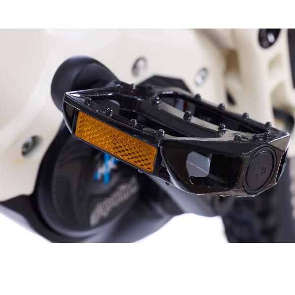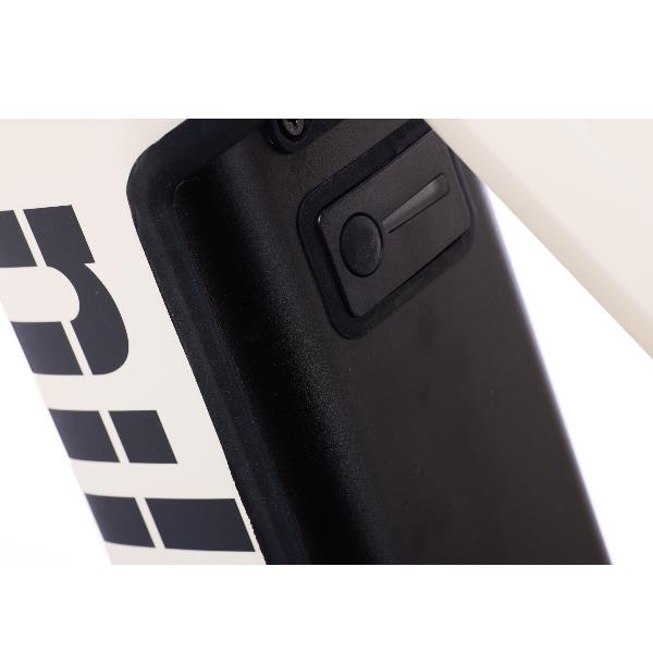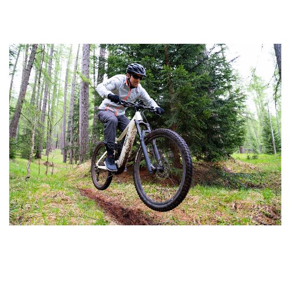 Puternic si compact (2,9 kg, un concentrat de tehnologie Made in Italy) POLINI EP3+ MX 36 V 250 W – 90 Nm si bateria detasabila cu litiu de 36 V 17,5 Ah – 630 Wh Samsung permit parcurgerea oricarui teren cu confort maxim, garantat de cadrul din aluminiu, tija telescopica PROMAX cu comenzi pe ghidon, amortizorul spate ROCKSHOX Deluxe Select si furca ROCKSHOX 35 Silver TK.