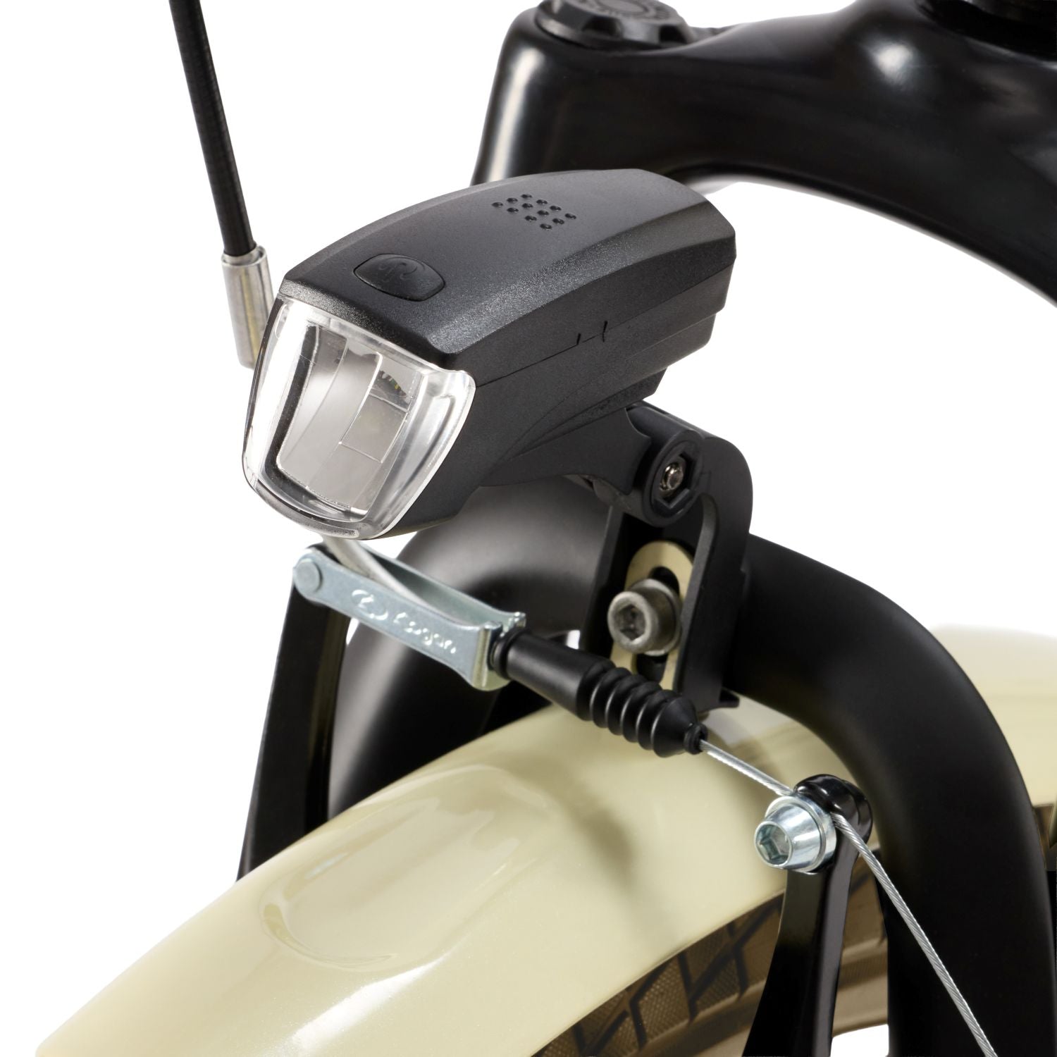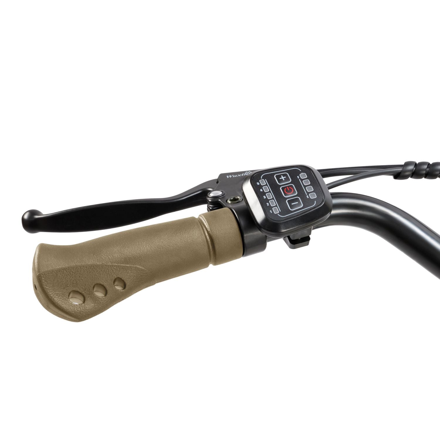 Motor BAFANG de 250W cu 3 trepte, activat de comanda de pe ghidon, capabil sa atinga o viteza maxima de 25 km/h.