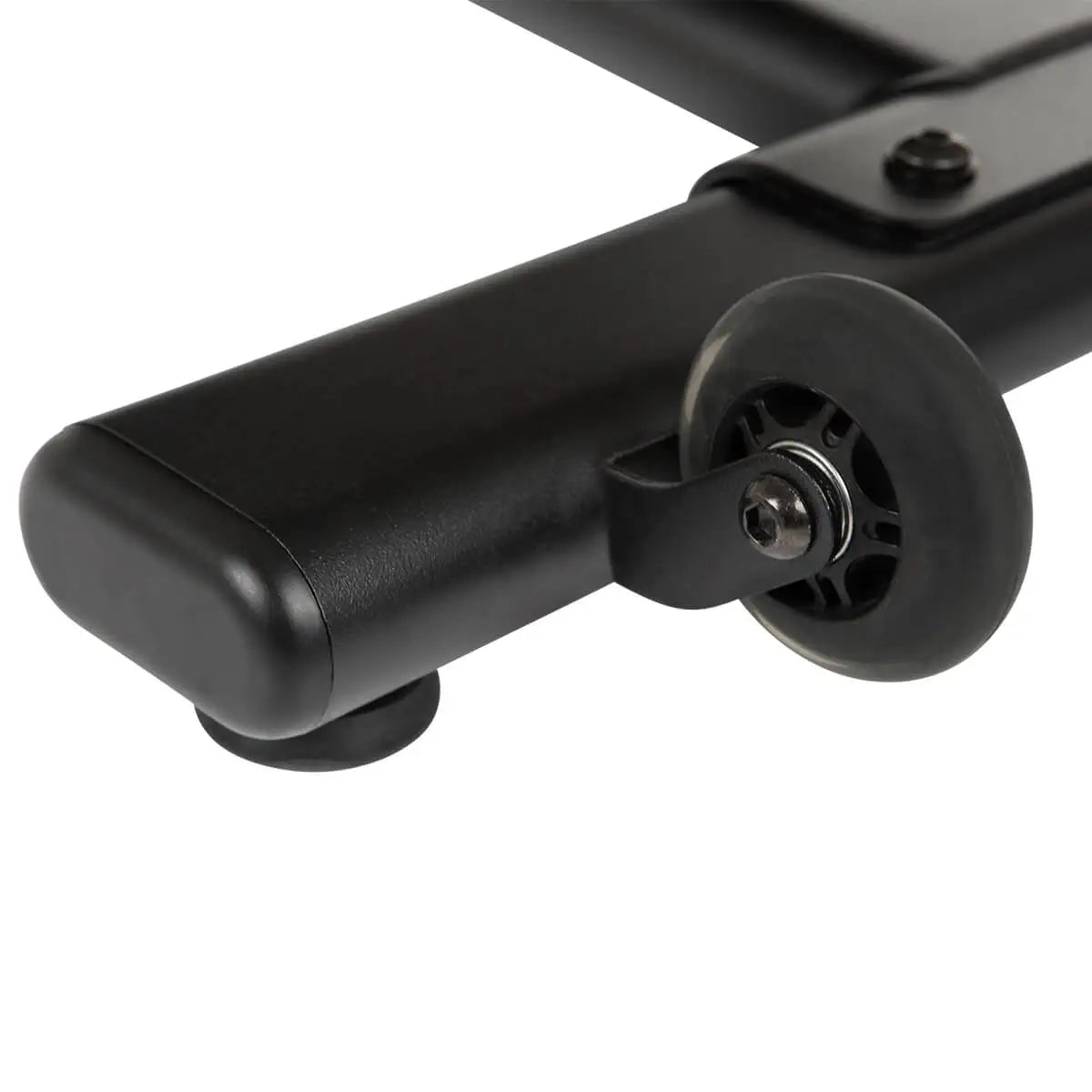 Sistem de sprijin in 4 puncte cu capace reglabile pe inaltime pentru nivelare perfecta. Constructie compacta (L x l x h: 115 x 50 x 134 cm) ce inspira siguranta si la sprinturi. Roti de transport premium pe piciorul frontal pentru mutare facila.