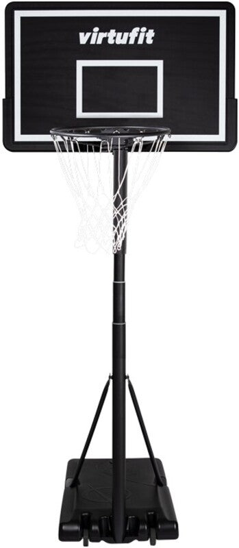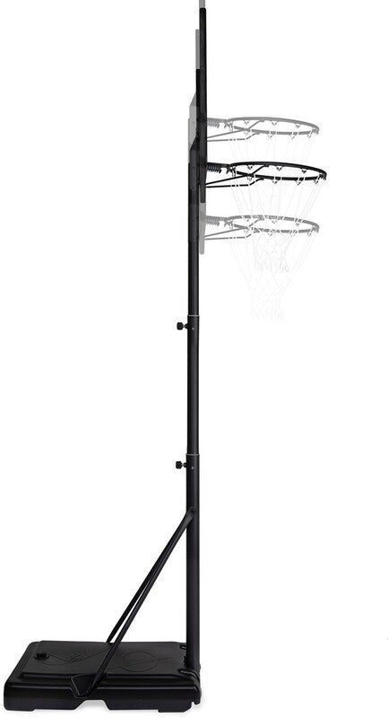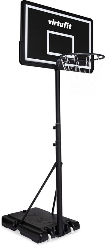 Rezistent la intemperii si durabilAcest cos de baschet este conceput pentru a rezista utilizarii intensive si diferitelor conditii meteorologice. Inelul de otel de 16mm asigura o performanta solida si constanta, in timp ce plasa alba din nailon, rezistenta la intemperii, dureaza pe tot parcursul anului. Stalpul in sine este realizat din otel robust cu un diametru cuprins intre 70mm si 76mm, asigurand o structura stabila si de incredere. Baza poate fi umpluta cu 110 kg de apa sau nisip pentru o rezistenta si stabilitate suplimentare in timpul sesiunilor de antrenament intense si jocurilor. Usor de reglatCosul de baschet reglabil VirtuFit este usor de reglat in inaltime prin extinderea stalpului. Aceasta metoda usor de utilizat permite tranzitii rapide intre diferite inaltimi, adaptand provocarea la nivelul jucatorilor, fiind potrivita atat pentru jucatorii mai tineri, cat si pentru adulti. Usor de mutatDatorita rotilor incorporate, cosul de baschet reglabil VirtuFit este usor de mutat. Puteti sa-l depozitati fara efort sau sa-l relocati intr-o alta locatie, fiind ideal pentru utilizare acasa, in gradina sau in zonele de joaca comune. VirtuFitMarca olandeza de fitness VirtuFit garanteaza calitate excelenta. Echipamentele si accesoriile lor de fitness sunt fabricate din materiale de inalta calitate, punand accent pe usurinta in utilizare, design si functii extinse.