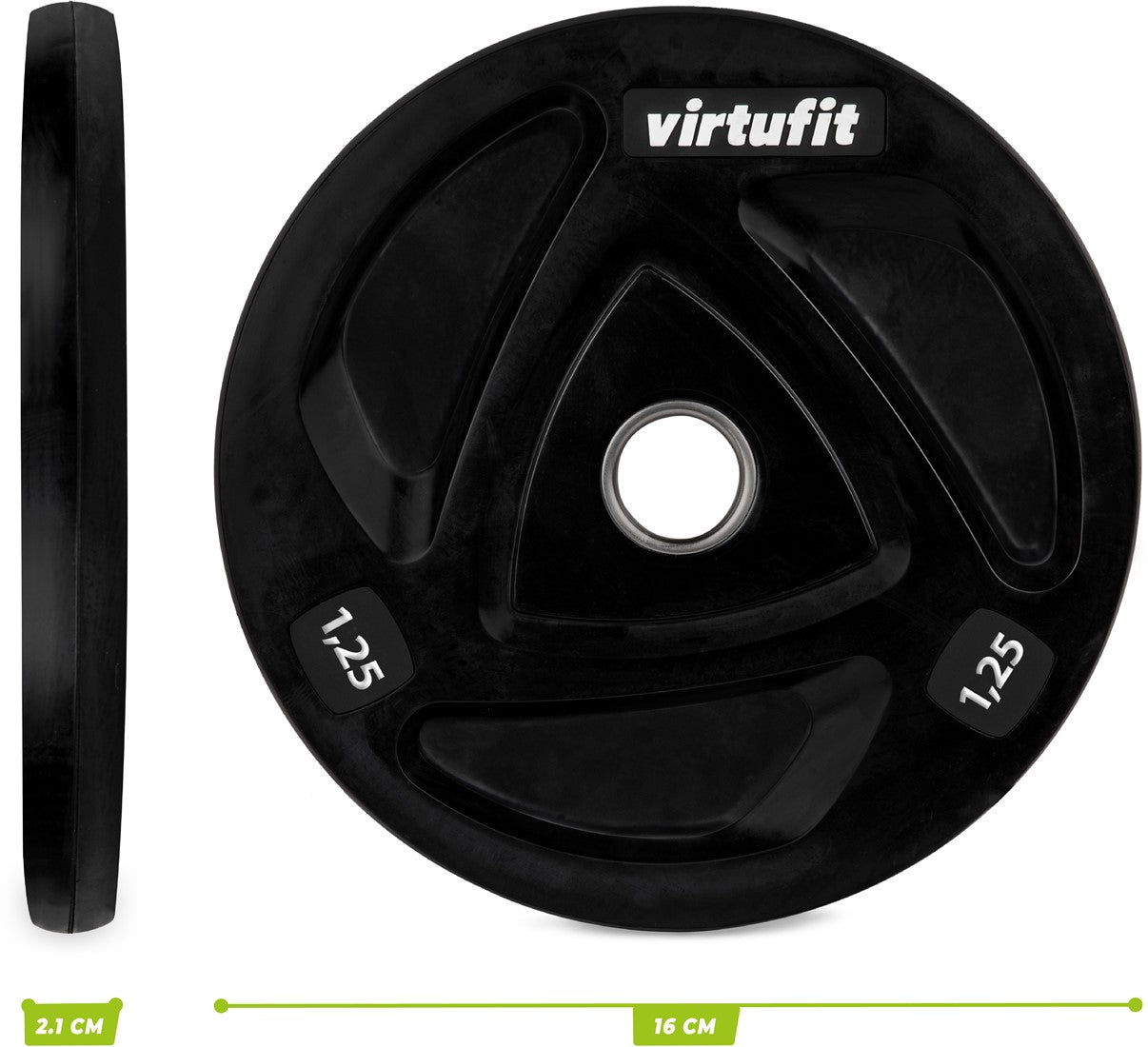 Discurile de greutati VirtuFit sunt ideale atat pentru uz casnic, cat si pentru uz profesional. Ele sunt adesea folosite in powerlifting si crossfit, dar sunt potrivite si pentru alte exercitii de antrenament de forta. Ce le face atat de potrivite? Materialul lor robust din cauciuc permite discurilor sa atinga podeaua fara sa o deterioreze.