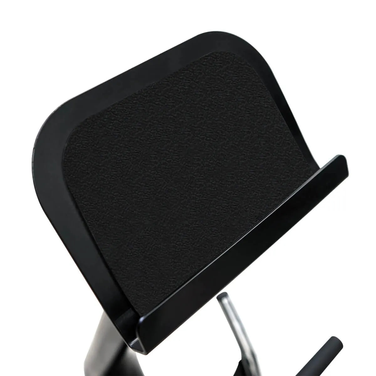 Apleacă-te înainte pe suportul pelvian reglabil pe 5 niveluri, apucă mânerul și ridică-te cu spatele drept.
