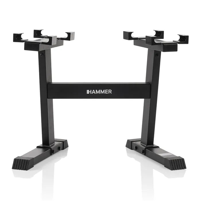 Standul ridică ganterele la o înălțime optimă, reducând solicitarea zonei lombare.