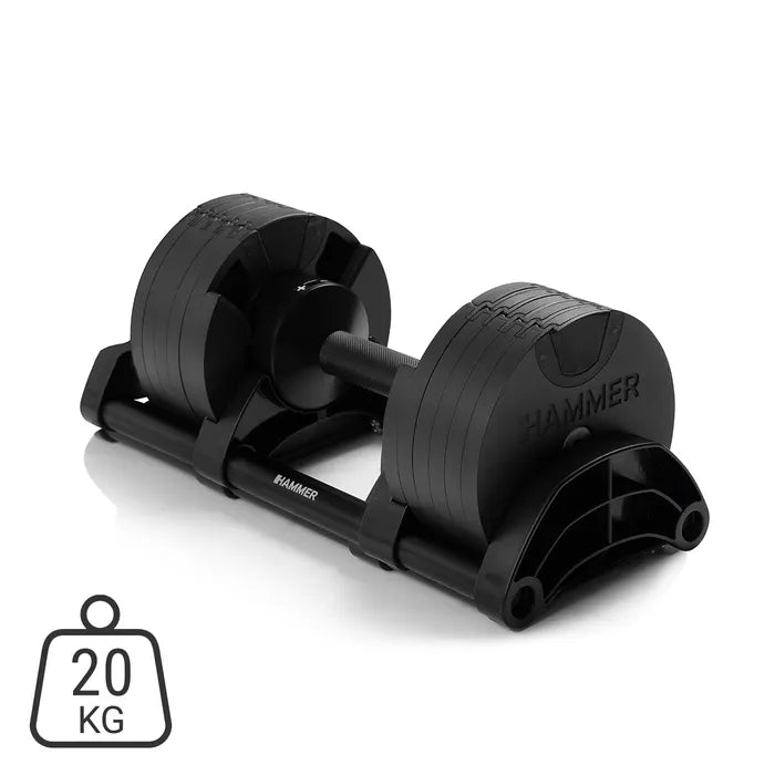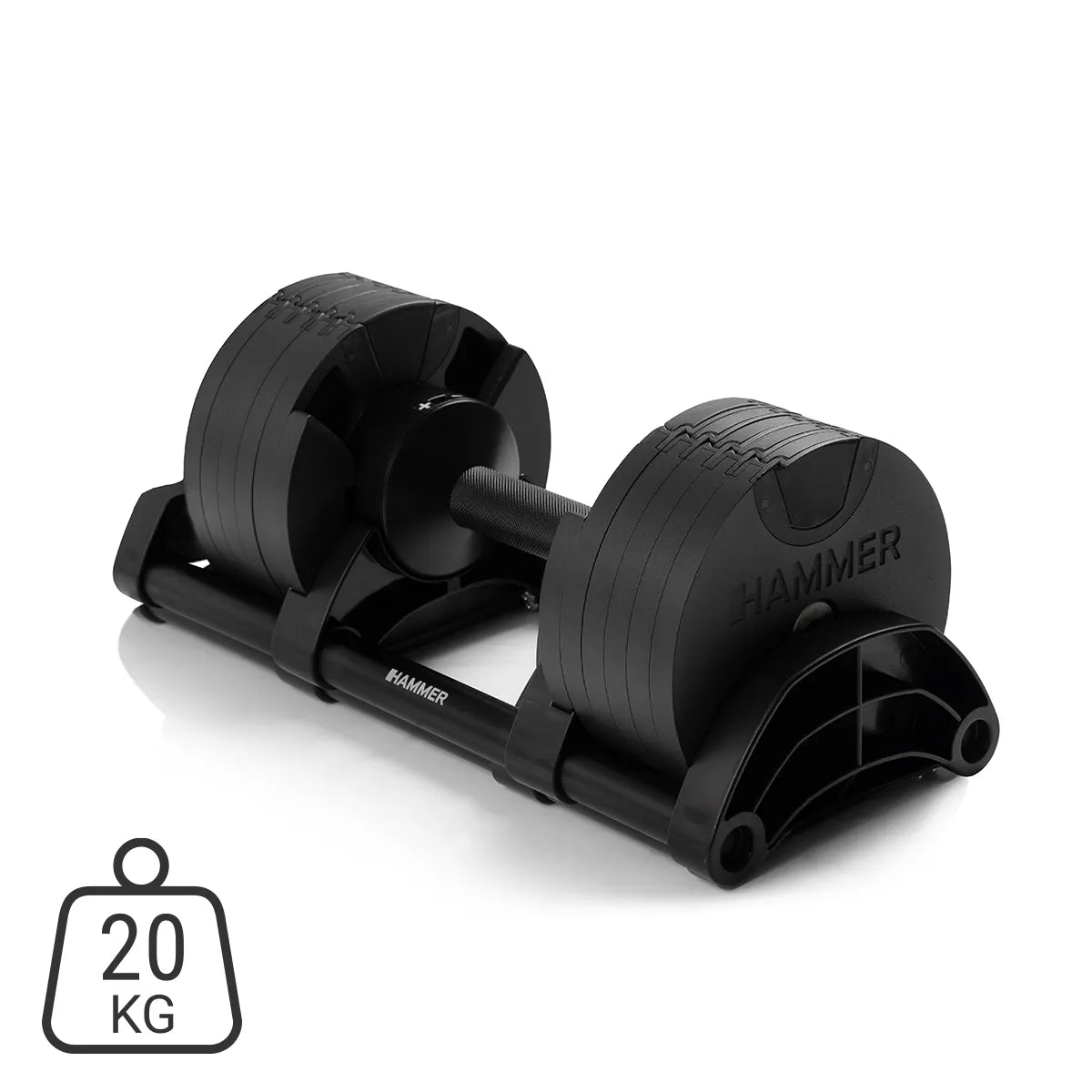 O gamă completă de gantere într-o singură ganteră – apucă, rotește și antrenează-te. SmartLock îți revoluționează antrenamentul: ajustezi greutatea rapid din mâner, iar plăcile rămase se depozitează în siguranță în suport. Fără schimbări greoaie, fără spațiu irosit.