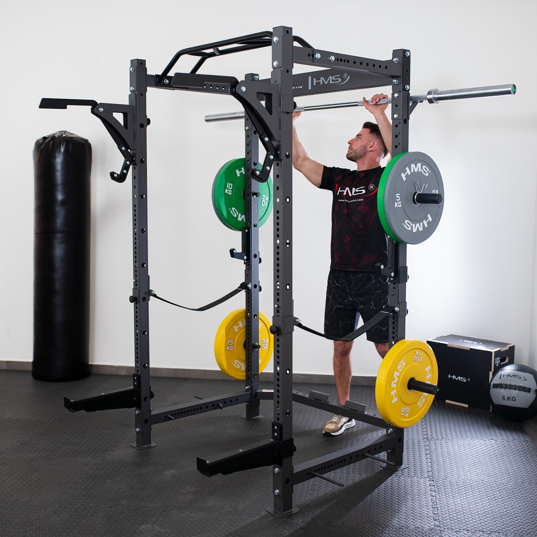 HMS KLT3110 – power rack comercial, robust, sigur și extrem de versatil, potrivit pentru antrenamente de forță, powerlifting, bodybuilding și funcționale, atât în săli profesionale, cât și acasă.