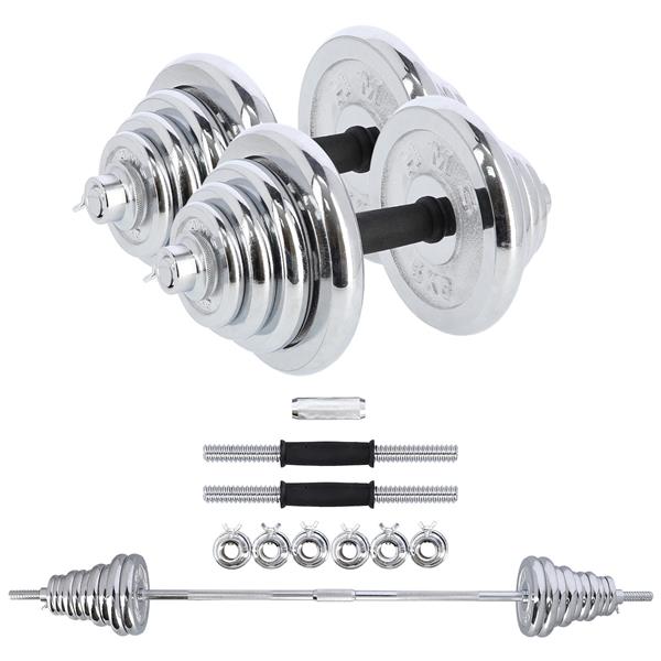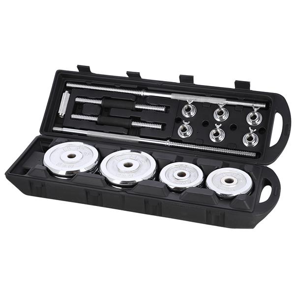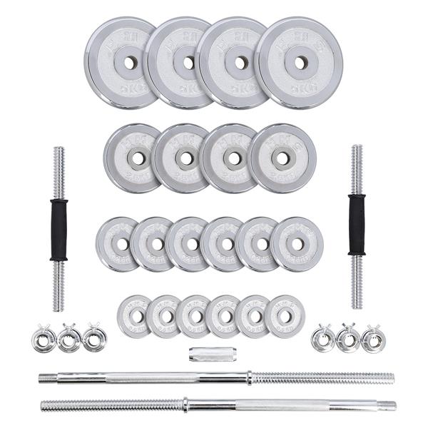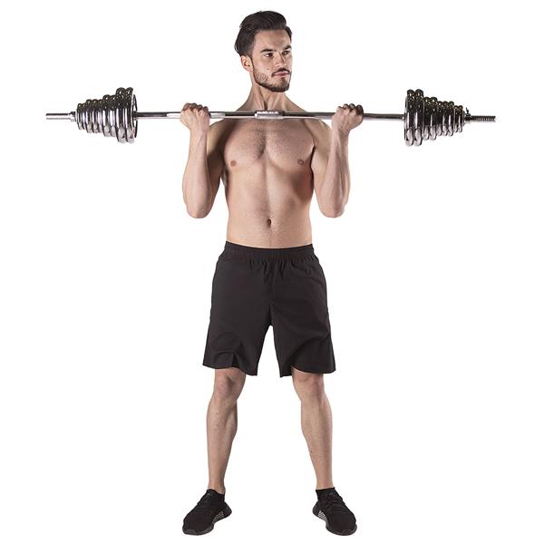 DescriereHaltera cu sarcina interschimbabila este un clasic si o necesitate pentru fiecare sala de gimnastica de acasa. In combinatie cu ganterele, ofera nenumarate posibilitati de exercitii. Otelul cromat de inalta calitate garanteaza o durabilitate ridicata, ceea ce inseamna ca echipamentul poate fi utilizat ani de zile. Clemele, precum si diametrul perfect adaptat al gaurilor placilor, faciliteaza schimbarea sarcinii si, in acelasi timp, o pozitionare sigura si stabila pe bara. Clemele sunt filetate, dar au o ranforsare suplimentara sub forma unui surub. Datorita acestui fapt, sarcina nu se misca in niciun fel in timpul exercitiului. Setul include doua manere scurte, o manere lunga rasucita, o manere rupta, o manere medie, care este formata prin combinarea a doua manere scurte, opt cleme si un total de 20 de placi de incarcare. Intregul set este continut intr-o valiza convenabila. Greutatea totala a setului este de 55 kg, astfel incat, pentru un transport mai usor, valiza are roti, ceea ce ajuta la deplasarea cu echipamentul. Combinatia de gantere cu manere va permite sa efectuati o pregatire cuprinzatoare a fiecarui grup muscular. Practicand cu gantere, ne vom dezvolta forta si rezistenta, ganterele vor introduce un element de instabilitate care va permite angajarea mai puternica a muschilor stabilizatori. Folosind o bara sparta si una medie, ne vom angaja muschii in unghiuri diferite, ceea ce va face ca antrenamentul sa fie mai eficient. Facand exercitii in acest fel, ne vom construi cu usurinta muschi de otel si o silueta ideala. Produsul este potrivit atat pentru utilizatorii avansati, cat si pentru cei incepatori. Incepeti sa va antrenati astazi, STC55 HMS este alegerea perfecta pentru sala de gimnastica de acasa. Grifon scurt x 2 Grifon lung rasucit x 1 Placi 5 kg - 4 Placi 2,5 kg x 4 Placi 1,25 kg x 6 Placute 0,5 kg x 6 Cleme x 6