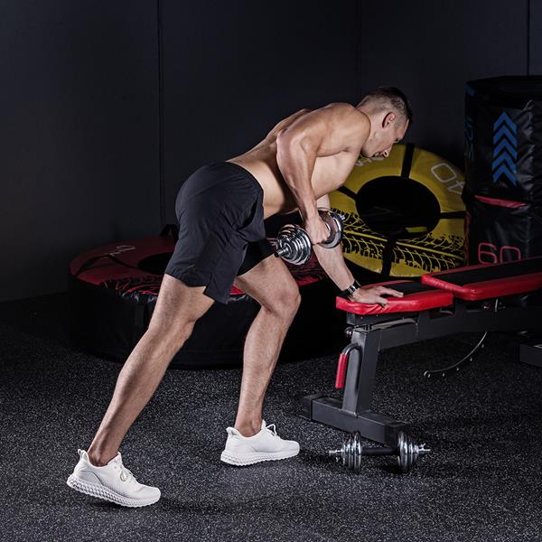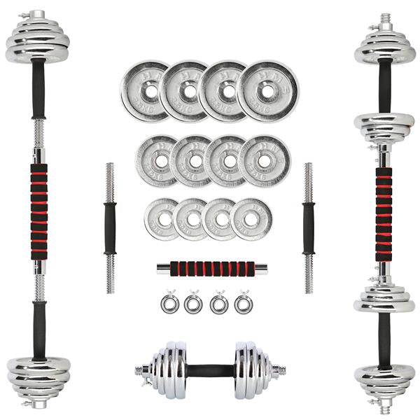 Setul cuprinde doua bare, patru cleme, un sistem de conectare al barelor si 16 greutati, toate acestea intr-o valiza confortabila.