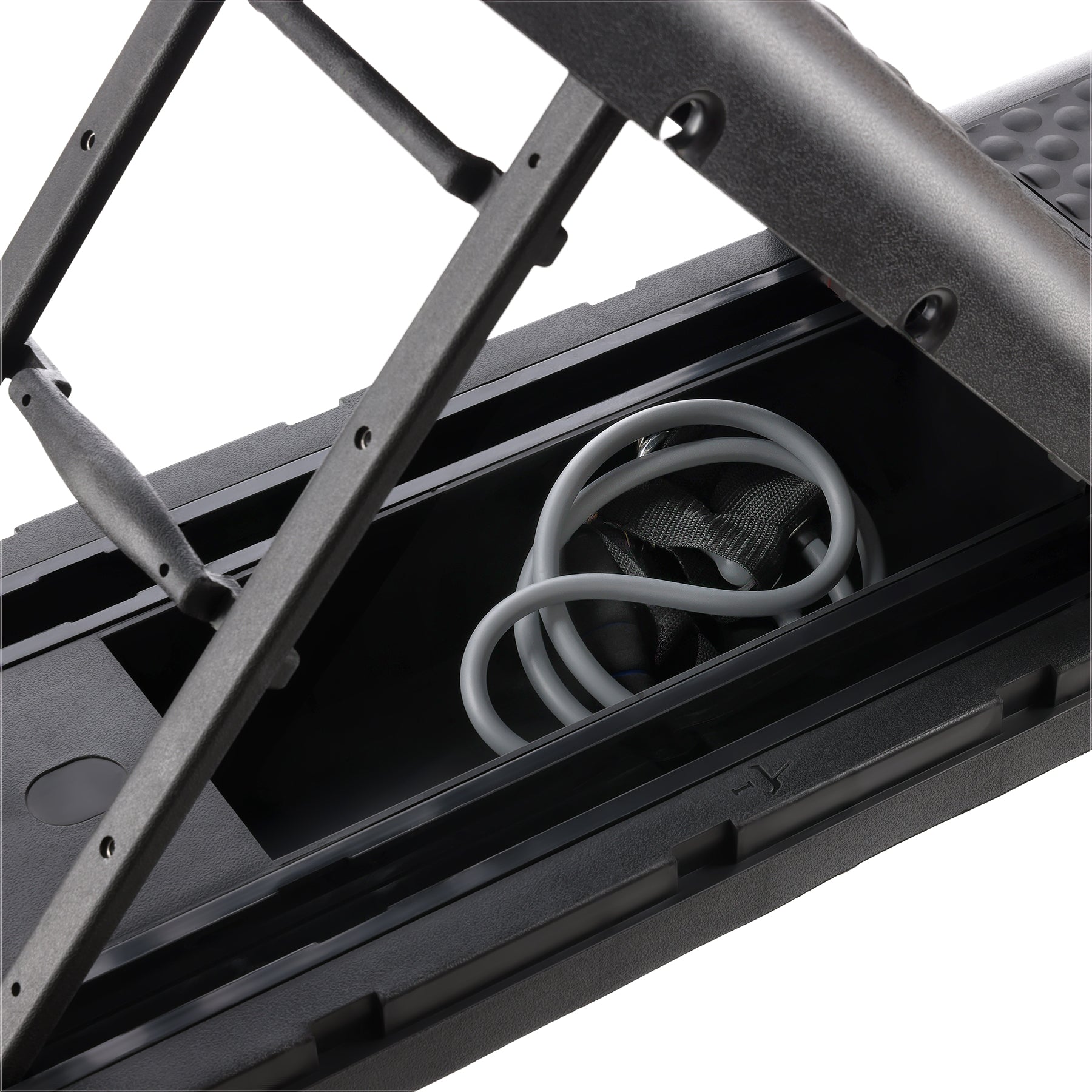 In doar cateva secunde, stepperul se transforma intr-o banca de antrenament completa. Spatarul poate fi ajustat in trei unghiuri diferite, permitand executarea unei game variate de exercitii de forta – cu gantere, benzi elastice sau expandere. Acest sistem imbina eficient antrenamentele de fitness cu cele de forta, valorificand intregul potential al corpului.