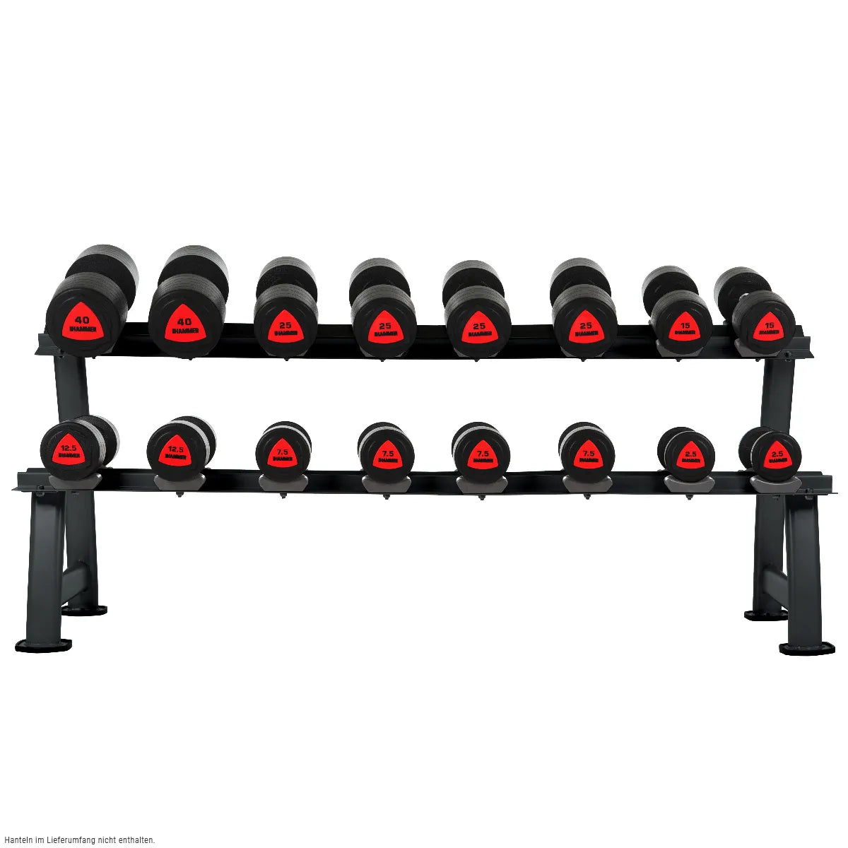 Suporta 12 gantere scurte (ganterele compacte HAMMER nu sunt incluse in livrare)