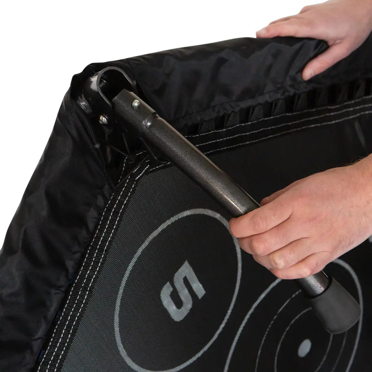 Arde calorii usor prin sarituri. Trambulina de fitness cu puncte de saritura si suporturi pentru picioare pliabile.